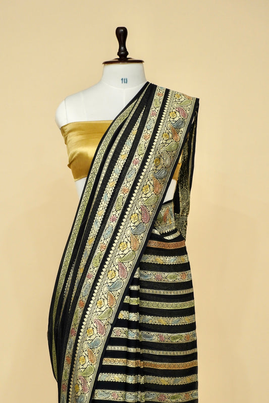 Pure Banarasi Black Khaddi Georgette Saree with Meenakari Work